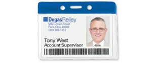 Color bar at the top of the badge. Lower portion is clear vinyl. Colortop badges for quick identification. Ideal for name badges at a meeting or event. Slot and chain holes for use with lanyard, chain or strap clip. Insert size: 4 1/4" X 3 3/8"