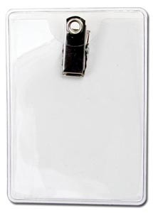 Horizontal badge holder with a special area for custom imprints. Credit/data card size badge holder. Premium grade vinyl and reinforced edges. Clip on with a rotating bulldog. Insert size: 4" X 3"