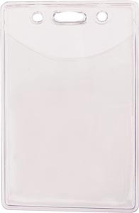 One pocket horizontal badge holder with slot and chain holes. Wear with chains, lanyards or strap clips. Government size badge holder. Premium grade vinyl and reinforced edges. Insert size: 3 7/8" X 2 5/8"
